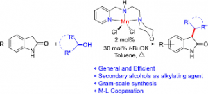 Rana, J., Nagarasu, P., Subramanian, M., … & Balaraman, E. (2021). Manganese-catalyzed C(α)-alkylation of oxindoles with secondary