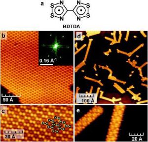 Self-assembled honeycomb lattice in the monolayer of cyclic thiazyl diradical BDTDA (=4,4 ‘-bis(1,2,3,5-dithiadiazolyl)) on Cu(111) with a zero-bias tunneling spectra anomaly Yamamoto, M., Suizu, R., & Dutta, S. et al. (2015). Self-assembled honeycomb lattice in the View More »