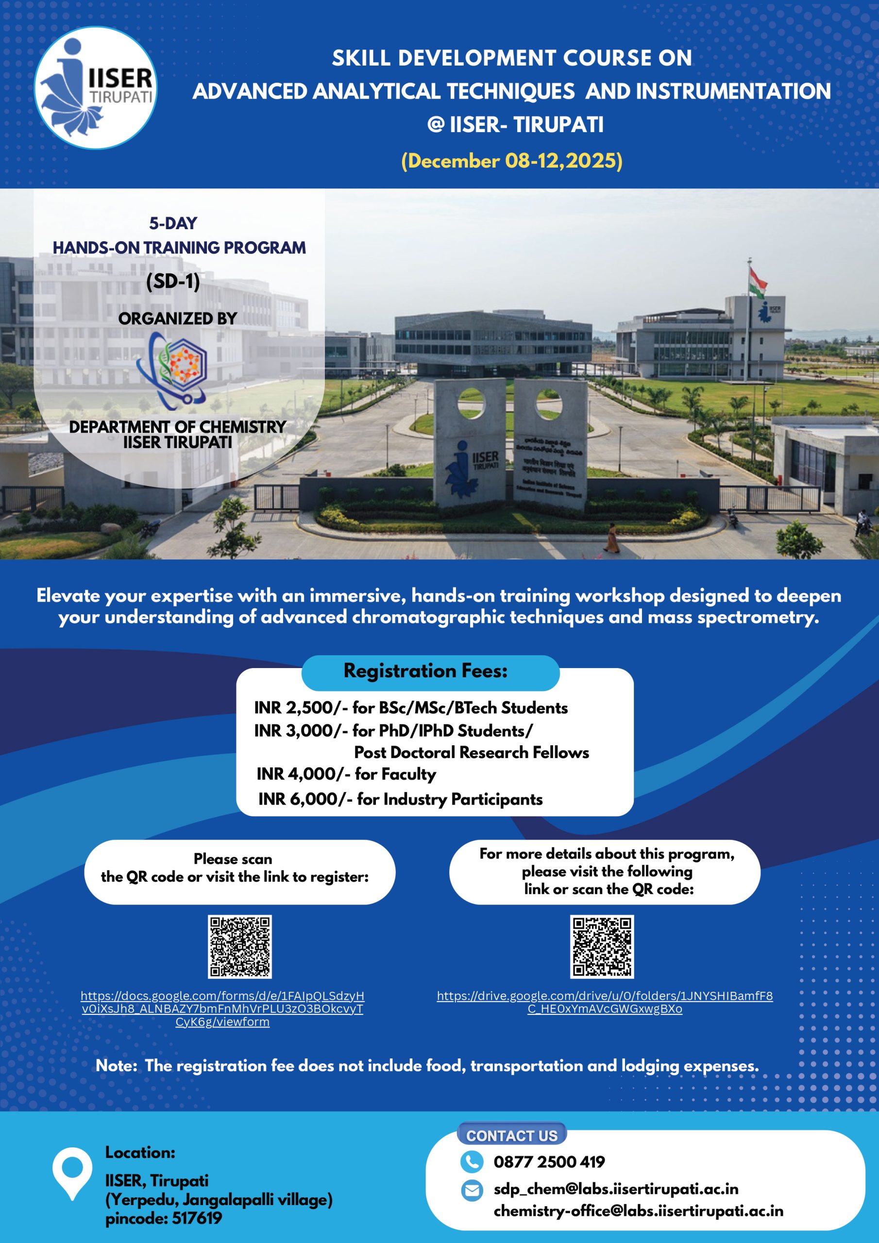 The Department of Chemistry at IISER Tirupati is set to launch its first “Skill Development Program” in December 2025.